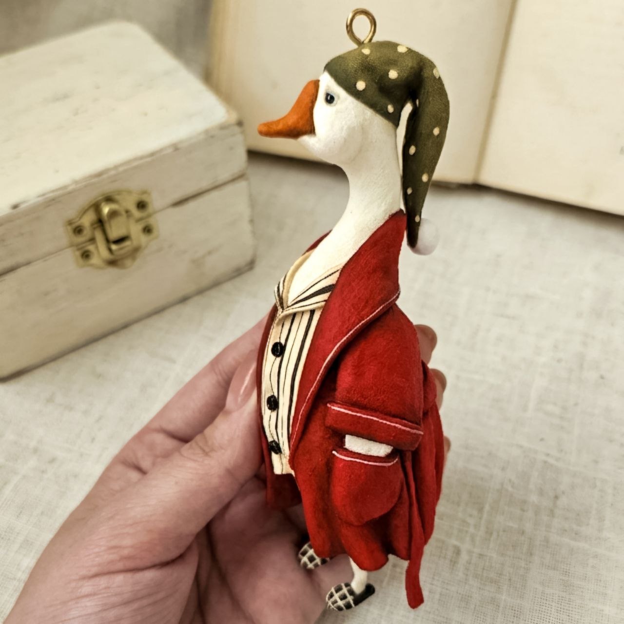 You saw him in my Reels: that adorable vintage goose in a cozy robe, just waking up and slowly enjoying his morning coffee with a fresh newspaper.