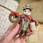 🐰 Это заяц Тимка — маленький помощник торговца книгами. На нём теплый коричневый жилет, длинное пальто, удобные штанишки и серая кепка. А ещё у него есть любимый голубой шарф, без которого он никуда не выходит 🧣.