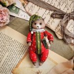 Этот волшебный ватный зайчик одет в красивый полосатый костюмчик оливкового цвета с красным бантиком 🎀. Его нежные ушки и мордочка сделаны с особой любовью.